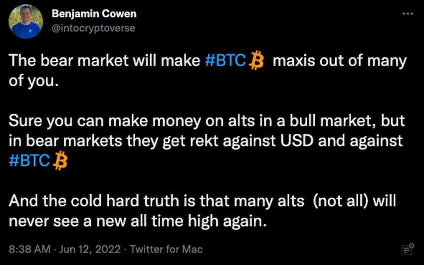 กลยุทธ์ในการเอาตัวรอดในตลาดหมี แม้ว่าการตระหนักถึงความสูญเสียจำนวนมากสำหรับ “Altcoin” นั้นเป็นเรื่องที่น่าเสียดาย เป็นแนวทางปฏิบัติที่ดีที่สุดเชิงปริมาณหากดูจากประวัติศาสตร์ คุณต้องโดนโทษอย่างแรงที่สุดหากคุณยังถือมันอยู่