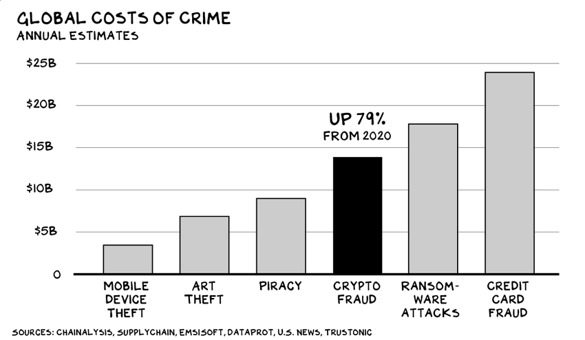 Decentralized กลายเป็นระบบใหม่ของ Scam โจรขโมย $14Bilion ใน 2021, Decentralization ให้คำมั่นสัญญาว่าจะแทน Middleman ด้วย Blockchain Technology แต่จริงๆแล้วเป็นการหลอกลวงครั้งใหญ่ โดยบอกว่าเป็นระบบการเงินแบบไม่ต้องใช้คนดูแล มีระบบในการตรวจสอบแบบซับซ้อน ในช่วงที่ราคามันขึ้นเอาๆคนก็ fomo เพื่อที่จะเอาเงินง่ายๆแบบนั้นบ้างและหวังว่ามันจะเป็นแบบนี้ตลอดไป
