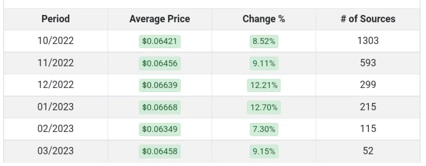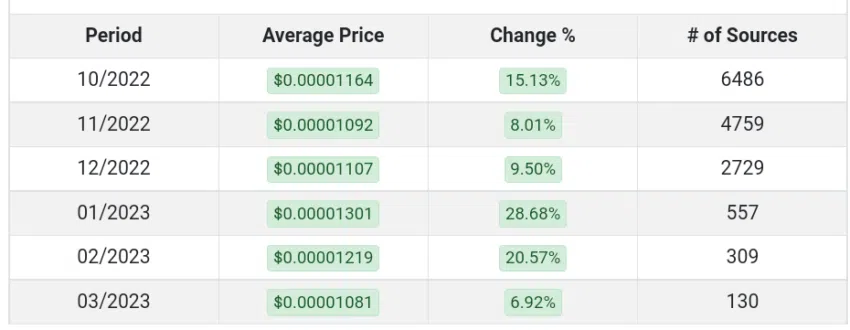 ราคาของ DOGE ลดลง 92% นับตั้งแต่แตะจุดสูงสุดตลอดกาลของมันที่ 0.7315 ดอลลาร์ในเดือนพฤษภาคม 2021 และปัจจุบันมันกำลังซื้อขายอยู่ที่ 0.0590 ดอลลาร์ ราคาของ SHIB ร่วงลง 88% จากจุดสูงสุดที่ 0.00008616 ดอลลาร์เมื่อเดือนตุลาคมปีที่แล้ว ในขณะที่เขียนข่าวนี้ ราคาของ SHIB เพิ่มขึ้น 0.4% มาอยู่ที่ 0.00001009 ดอลลาร์ในวันดังกล่าว ตามข้อมูลของ CoinGecko