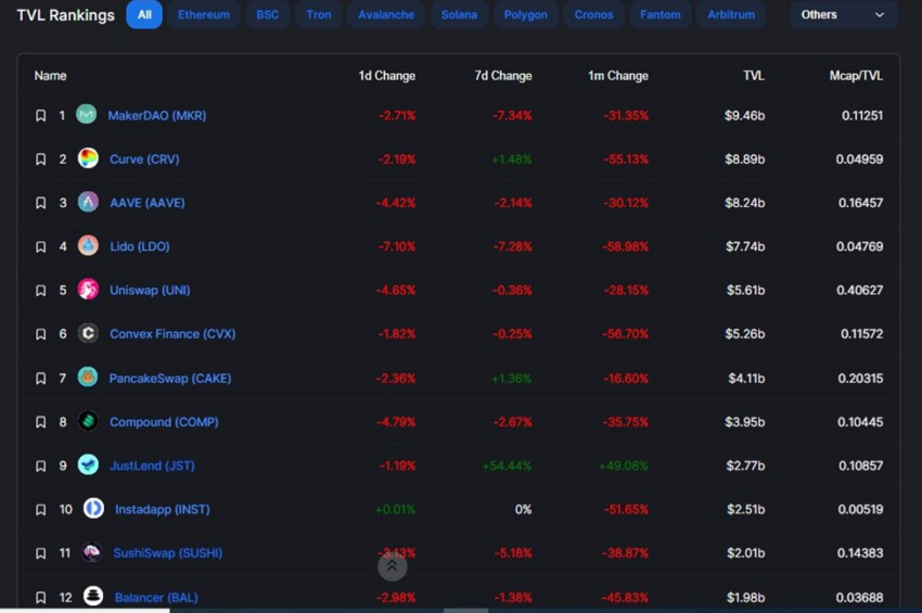 มูลค่า TVL ที่ลดลงนั้นเกิดจากสภาพตลาดที่เติบโตอย่างไม่เสถียรซึ่งเกิดขึ้นบนห่วงโซ่ที่มี Smart Contract สนับสนุน