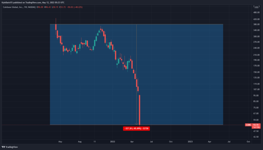 และเท่าที่ Coinbase แสดงความกังวล ราคาหุ้นในแพลตฟอร์มตอนนี้โฉบใกล้ 53 ดอลลาร์สหรัฐ ถือว่าลดลงกว่า 85% จากวันเปิดทําการในเดือนเมษายน 2021