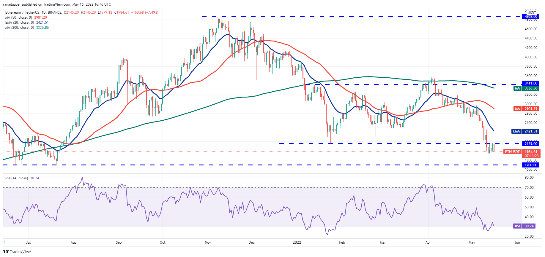 Ethereum (ETH) กำลังเผชิญกับแนวต้านที่แข็งแกร่งที่ระดับ Breaking ที่ 2,159 ดอลลาร์ ซึ่งบ่งชี้ว่าตลาดหมียังคงขายต่อจากการชุมนุม ตอนนี้หมีจะพยายามดึงราคาให้ต่ำกว่าแนวรับทันทีที่ 1,940 ดอลลาร์