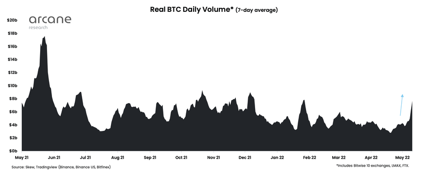 การวิจัยของ Arcane ระบุว่า ปริมาณการซื้อขายเฉลี่ยของ Bitcoin ในสัปดาห์ที่แล้วเพิ่มขึ้นสู่ระดับสูงสุดนับตั้งแต่เดือนมกราคม ที่เกิดขึ้นในช่วงเวลาที่มีความเชื่อมั่นอย่างรุนแรง