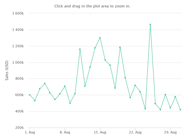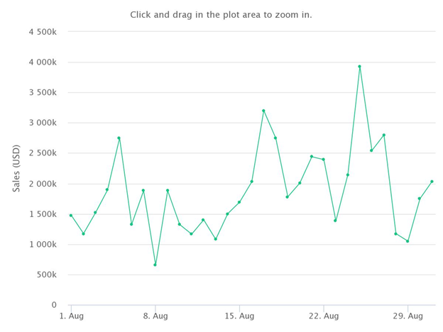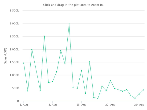 จากที่ OpenSea มีรายได้ 502 ล้านดอลลาร์ในเดือนสิงหาคม ยอดขายทั่วโลกลดลง 7% จาก 682 ล้านดอลลาร์ในเดือนกรกฎาคมเป็น 634 ล้านดอลลาร์ในเดือนกรกฎาคม