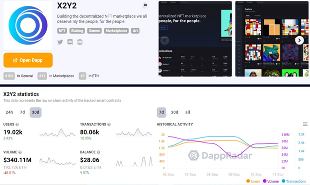 ในช่วง 30 วันที่ผ่านมา (ณ เวลาที่เขียนบทความ) X2Y2 ซึ่งเป็นตลาด NFT ที่เปิดตัวเมื่อเดือนกุมภาพันธ์ที่ผ่านมาได้แซงหน้า OpenSea ในเรื่องปริมาณการซื้อขาย X2Y2 มีปริมาณการซื้อขายที่ประมาณ 340 ล้านดอลลาร์จากธุรกรรม 80,000 รายการและผู้ใช้งาน 19,000 ราย