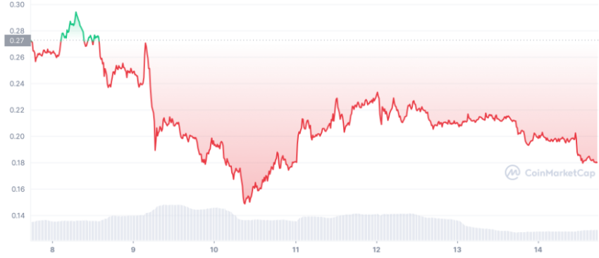 บน CoinMarketCap โทเค็น CHZ นั้นมีการซื้อขายกันอยู่ที่ราคา 0.18 ดอลลาร์ ตอนนี้ขาดทุนไปแล้วมากกว่า 30% นับตั้งแต่ที่มันแตะระดับสูงสุดที่ 0.275 ดอลลาร์เมื่อต้นสัปดาห์ที่แล้ว