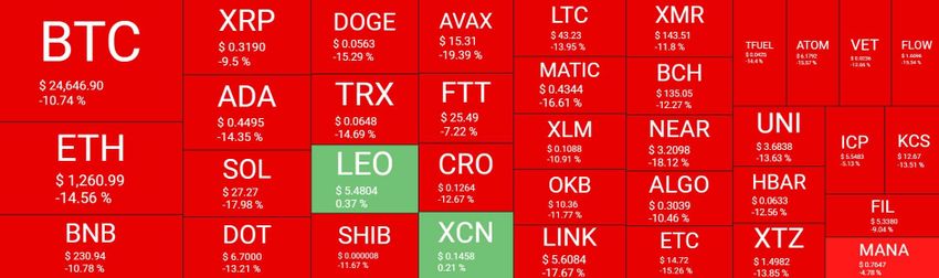 การลดลงของราคา Crypto อย่างสาหัสที่ดำเนินมาตั้งแต่สุดสัปดาห์จนถึงปัจจุบัน โดยเหรียญใหญ่ที่สุดอย่าง Bitcoin ร่วงลงต่ำกว่า 25,000 ดอลลาร์ ซึ่งต่ำสุดในรอบ 18 เดือน และดูเหมือนว่าความเสียหายจะยังดำเนินต่อไปในระยะสั้น