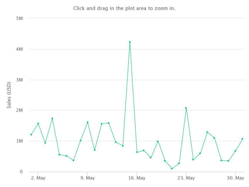 สถิตินี้ไม่เพียงแต่ดูน่าประทับใจเมื่อเทียบกับปริมาณการขายของ Axie Infinity, Mutant Ape Yacht Club (MAYC), NBA Top Shots และ VeeFriends ในช่วงเวลาดังกล่าว แต่ยังพบว่ายอดขายของพวกเขาเพิ่มขึ้น 34% ในเดือนพฤษภาคม ยอดขายของ CryptoPunks อยู่ที่ 30.78 ล้านดอลลาร์