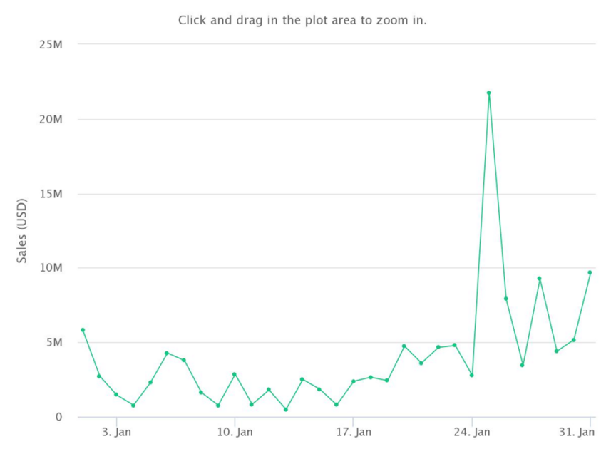เมื่อเทียบกับเดือนมกราคม 2022 เมื่อ CryptoPunks มียอดขายสูงสุดในรอบปี มีผู้ซื้อที่ไม่ซ้ำกัน 281 ราย ซึ่งสอดคล้องกับธุรกรรม 517 รายการ ภายในสิ้นเดือนแรกของปี ยอดขายของ CryptoPunks อยู่ที่ 124.25 ล้านดอลลาร์