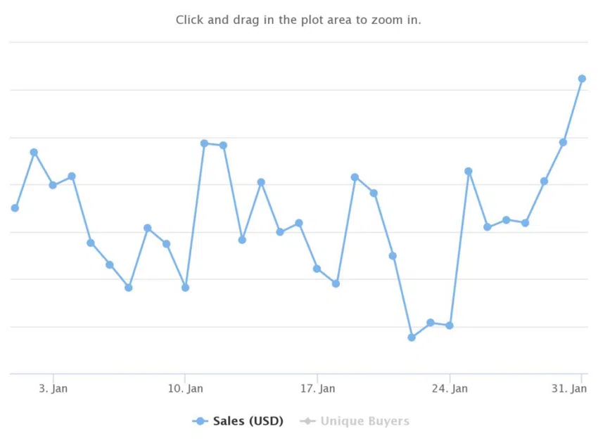 เมื่อเทียบกับเดือนมกราคม 2022 ที่ Ethereum ทำสถิติสูงสุดตลอดกาล (All Time High) ในปริมาณการซื้อขายรายเดือน ผู้ซื้อที่ไม่ซ้ำกันคือ 359,483 ราย สอดคล้องกับธุรกรรม 1,313,384 รายการ ที่จุดสูงสุดในเดือนมกราคม Ethereum มีปริมาณการซื้อขายรายเดือนอยู่ที่ประมาณ 4.05 พันล้านดอลลาร์
