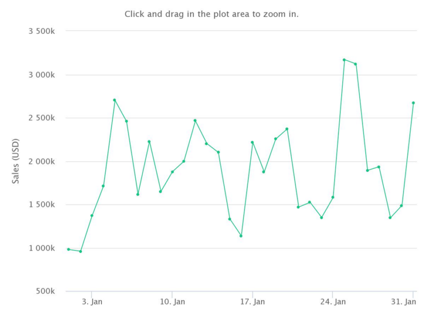 เมื่อเปรียบเทียบกับในเดือนมกราคม ซึ่งยอดขายไปถึงจุดสูงสุดรายเดือน ผู้ซื้อที่ไม่ซ้ำกันอยู่ที่ 64,494 ราย และสอดคล้องกับ 1,828,283 ธุรกรรม ในเดือนมกราคม ยอดขายอยู่ที่ประมาณ 59.02 ล้านดอลลาร์