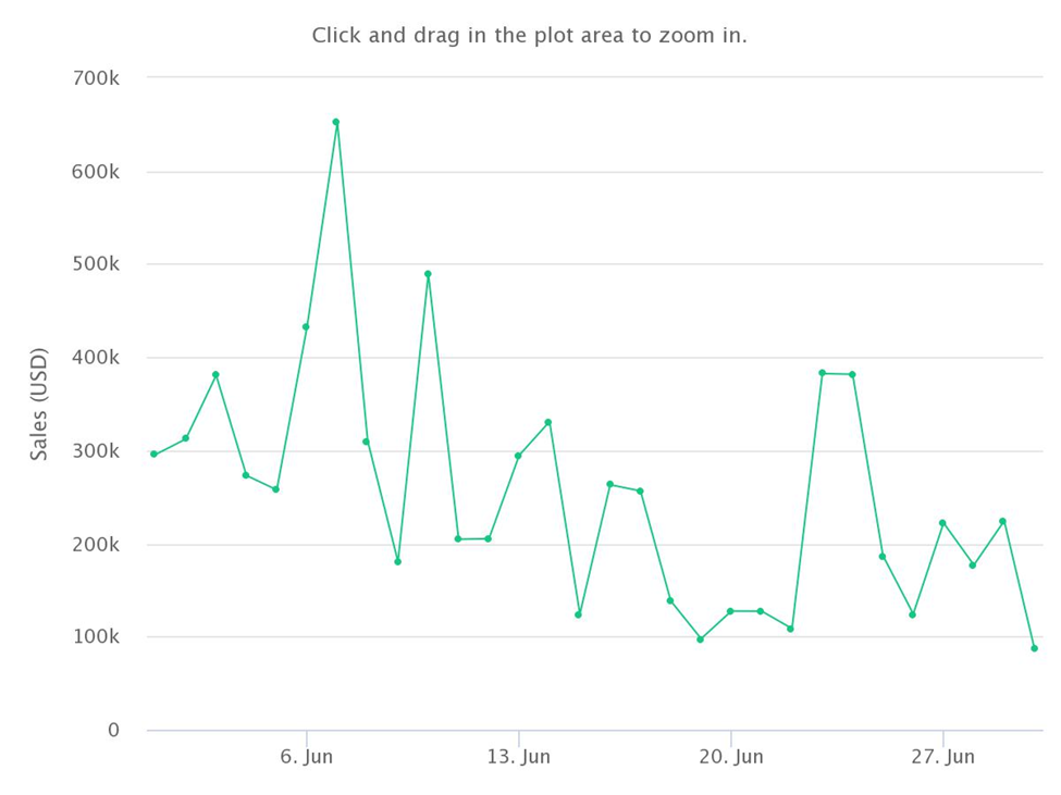 Sponsoredยอดขายของ NBA Top Shot อยู่ที่ประมาณ 7.67 ล้านดอลลาร์ในเดือนมิถุนายน จากข้อมูลของ Be[In]Crypto Research