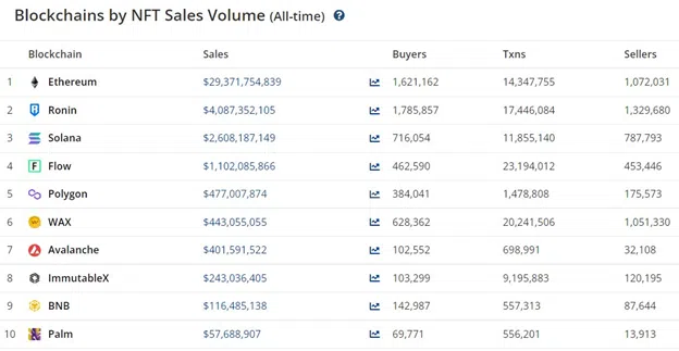 ที่มา: อันดับบล็อกเชนโดยยอดขาย NFT ตลอดกาล จาก CryptoSlam