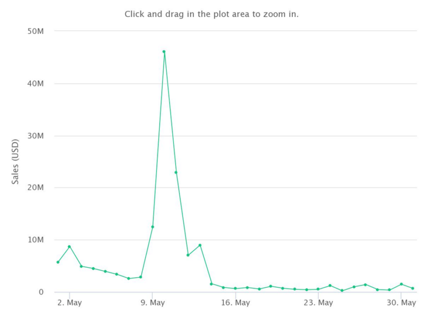อย่างไรก็ตาม สถิตินี้ต่ำกว่ายอดขายของ Bored Ape Yacht Club (BAYC), Mutant Ape Yacht Club (MAYC) และอื่น ๆ ด้วยเหตุนี้ ยอดขายรายเดือนล่าสุดจึงลดลง 91% จากยอดขายในเดือนพฤษภาคมที่ 147.97 ล้านดอลลาร์สหรัฐ