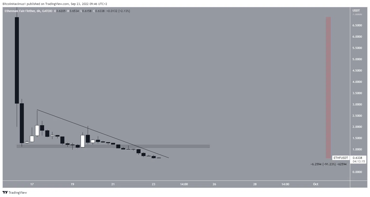 ราคา ETHF ลดลงเป็นอย่างมากนับตั้งแต่วันที่ 5 กันยายนและปัจจุบันต่ำกว่าราคาเปิดของมันเองอยู่ 91% ETHF แตะระดับต่ำสุดตลอดกาลที่ 0.59 ดอลลาร์ในวันศุกร์ และไม่แสดงให้เห็นถึงสัญญาณของ Bullish Reversal (สัญญาณกลับตัว) ที่อาจจะเกิดขึ้น