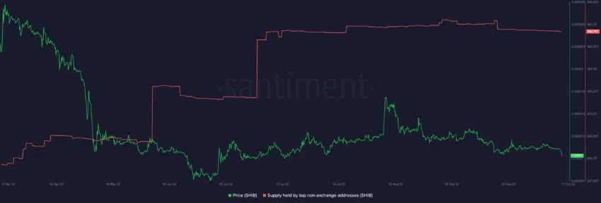 อย่างไรก็ตาม มันมีการไหลออกเป็นจำนวนมากจาก Address ที่ไม่ใช่ของกระดานเทรดที่ใหญ่ที่สุดเมื่อประมาณวันที่ 20 กันยายน ซึ่งเป็นการบ่งชี้ว่าวาฬบางรายน่าจะเท SHIB แล้วจากที่ราคาของมันลดลงต่ำกว่าระดับแนวรับที่สำคัญ