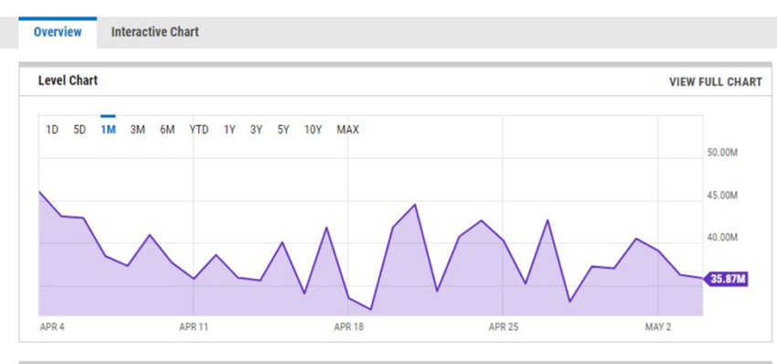 สถิติสูงสุดในวันเดียวในเดือนมีนาคม 2022 อยู่ที่ 47.54 ล้านดอลลาร์ ตามข้อมูลจาก YCharts นอกจากนี้ ระดับสูงสุดในวันเดียวในเดือนเมษายน (46.01 ล้านดอลลาร์) ต่ำกว่าระดับสูงสุดวันที่ดีที่สุดของเดือนมกราคม 2022 ที่ 60.16 ล้านดอลลาร์ถึง 23%