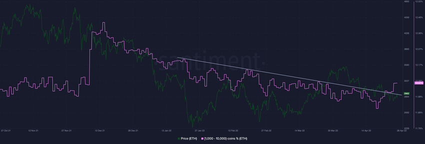 ในช่วงเวลาดังกล่าวนักลงทุน Ethereum ที่อยู่ในกลุ่มวาฬได้หันกลับมาเริ่มสะสม ETH อย่างจริงจังหลังจากไม่มีการเคลื่อนไหวเป็นเวลา 4 เดือน โดยบริษัทข่าวกรองด้านการตลาดกล่าวว่า นิติบุคคลที่ถือครองระหว่าง 1,000 ถึง 10,000 ETH ได้เพิ่มมูลค่ารวม 142,000 ETH โดยทันที ซึ่งมีมูลค่าประมาณ 407,415,040 ดอลลาร์ในขณะนั้น