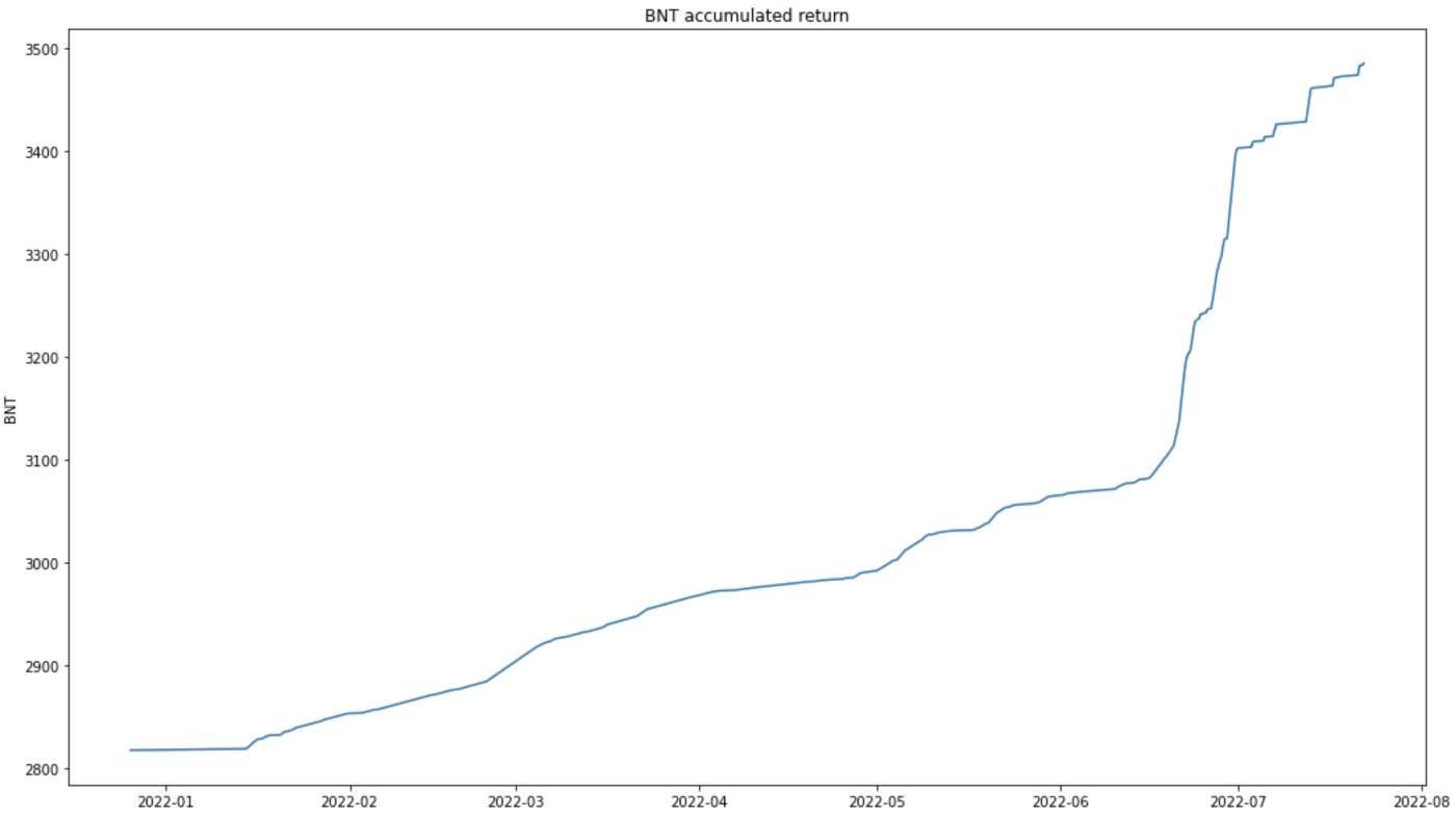 คุณซื้อ 2817.298211015636 BNT ในราคา 3.5495 หลังจาก 208.0 วัน คุณได้รับ 668.1610860926027 BNT เพิ่มเติม ทำให้คุณมียอดรวม 3485.4592971082384 BNT ราคาของ BNT หลังช่วงการลงทุนคือ 0.586 PNL จากการให้ผลผลิตคือ 391.54239645026513 PNL จากคลัง -8349.063248344837 PNL ทั้งหมดของคุณคือ: -7957.520851894572