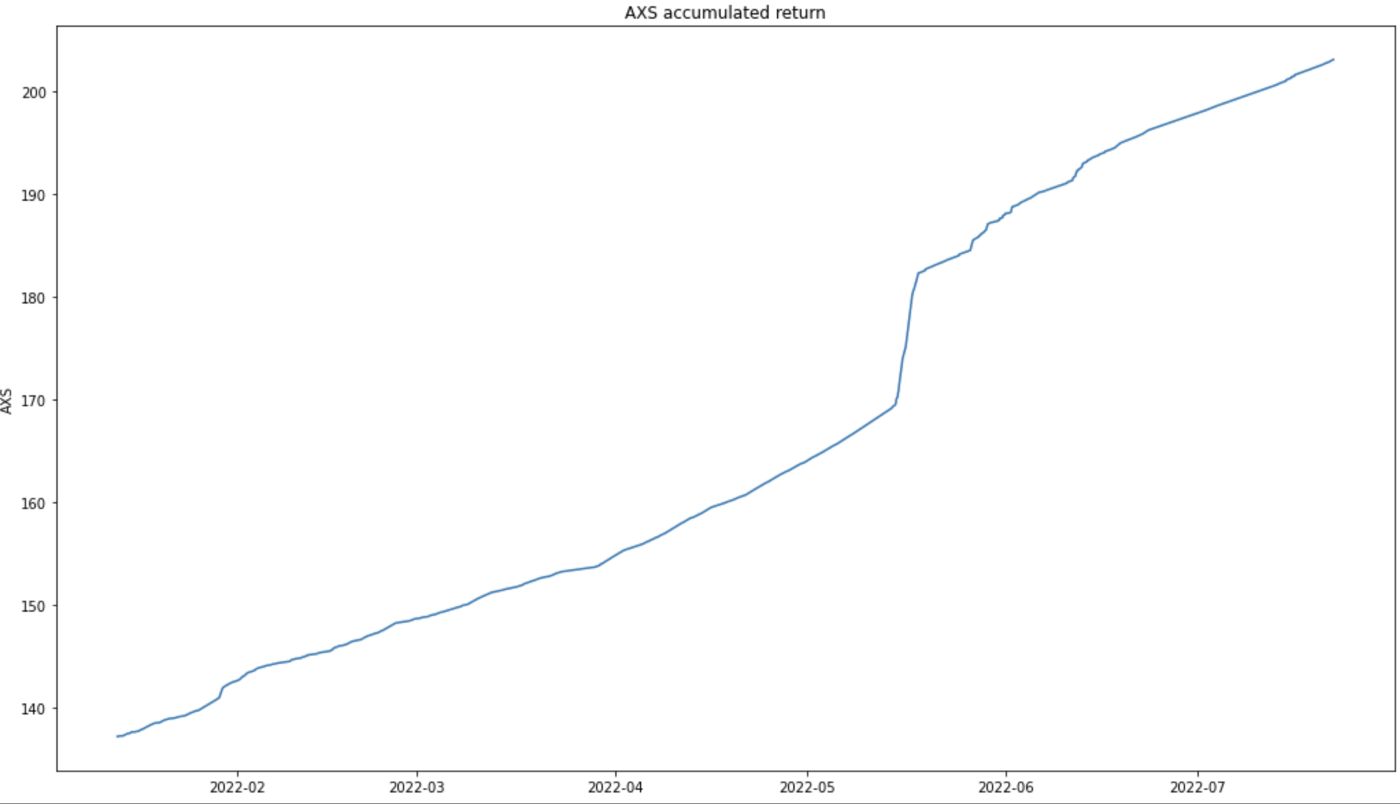 แม้ว่า AXS จะมีจุดข้อมูลจำนวนมากที่ให้ผลตอบแทนสูงกว่า 100% แต่ผลลัพธ์โดยเฉลี่ยสำหรับช่วงเวลานั้นคือ 48.077%