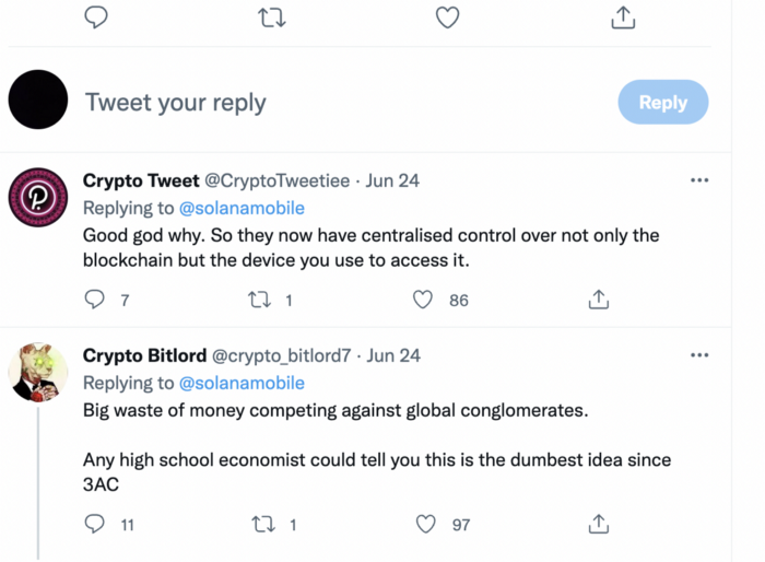 เช่นเดียวกับ dYdX โซลาน่าก็มาพร้อมกับการประกาศที่พลิกผันเมื่อเร็วๆ นี้ ขอแนะนำ Solana Mobile ซึ่งเป็นโทรศัพท์บล็อคเชนสำหรับ Solana เช่นเดียวกับ dYdX พวกเขาได้รับการวิพากษ์วิจารณ์และเยาะเย้ยมากมาย