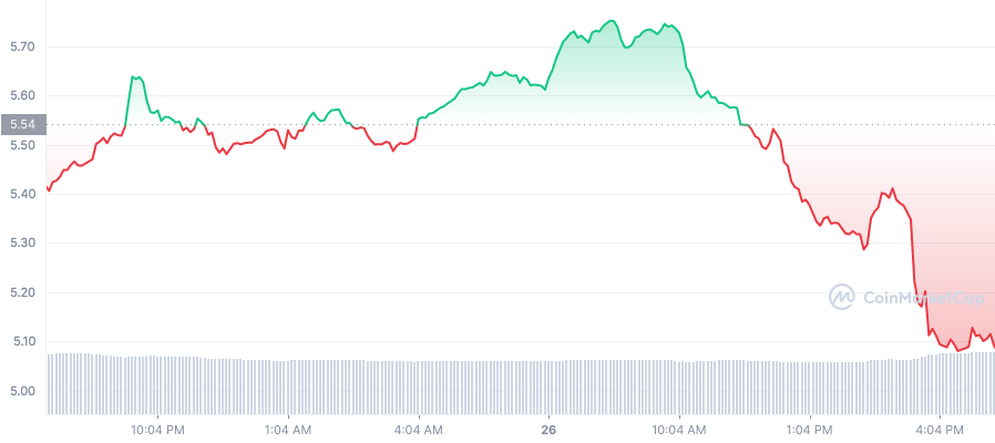 • Uniswap ลดลงกว่า 8.7% ในช่วง 24 ชั่วโมงที่ผ่านมา ซื้อขายที่เพียงกว่า 5 ดอลลาร์