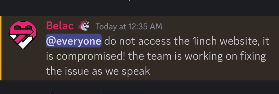 Sponsoredผู้ใช้ 1inch ได้รับคำเตือนให้ระมัดระวังในการโต้ตอบทุกประเภท