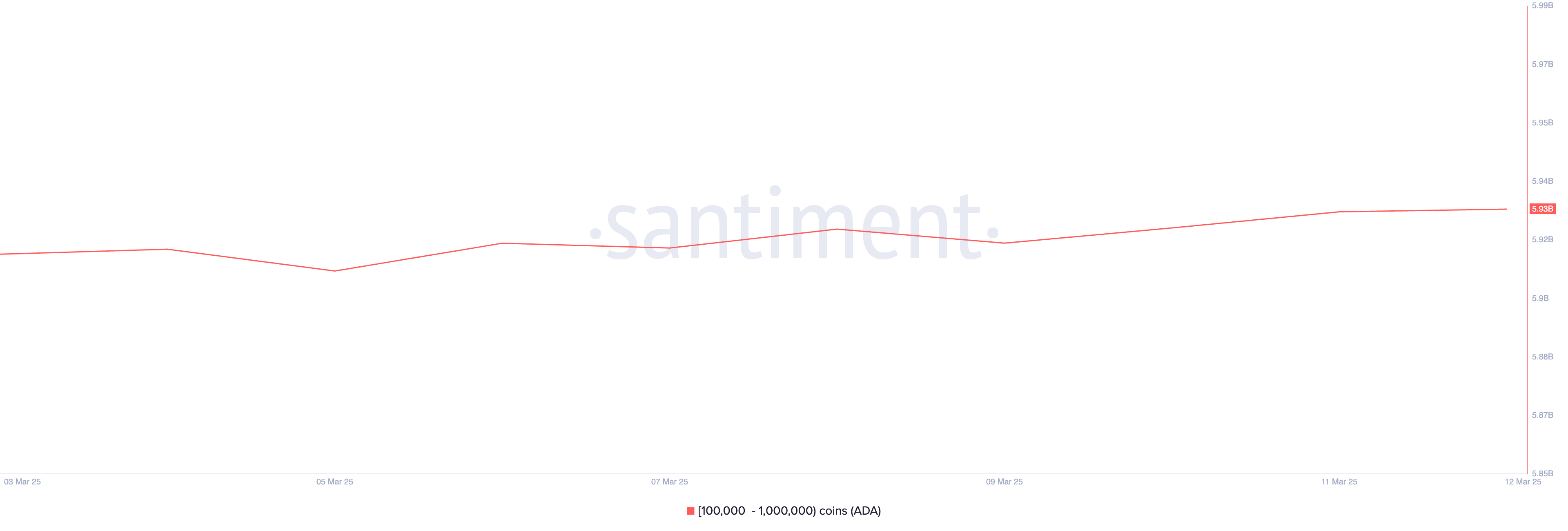 นอกจากนี้ วาฬ ADA ได้เพิ่มการสะสมในช่วงเวลาที่ตรวจสอบ ซึ่งเน้นถึงการเพิ่มขึ้นของความรู้สึกเชิงบวกต่อ altcoin ข้อมูลบนเครือข่ายจาก Santiment แสดงว่านักลงทุนรายใหญ่ที่ถือครองระหว่าง 100,000 ถึง 1,000,000 coin ได้ สะสม 20 ล้าน ADA ในสัปดาห์ที่ผ่านมา