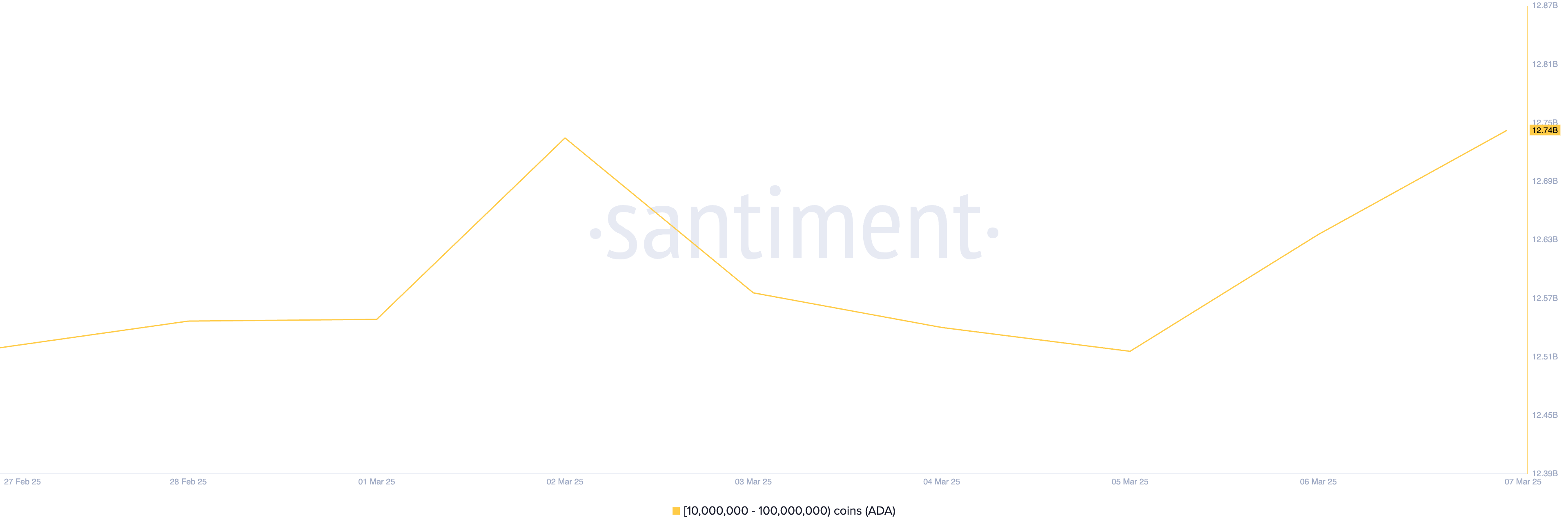ในขณะที่เขียนนี้ กลุ่มนักลงทุนรายใหญ่ ถือครองรวมกัน 12.74 พันล้าน ADA ซึ่งเป็นการสะสมสูงสุดในรอบหกเดือน