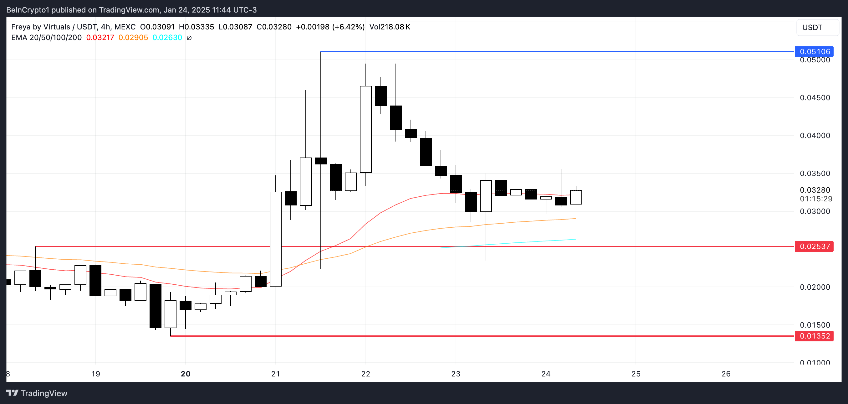 หาก FREYA กลับมาเป็นขาขึ้นอีกครั้ง อาจกลับไปที่ระดับใกล้ USD0.05 ในทางกลับกัน การปรับฐานที่แข็งแกร่งขึ้นอาจทำให้ราคาทดสอบการสนับสนุนที่ USD0.025 และอาจลดลงถึง USD0.0135 หากระดับนั้นล้มเหลว