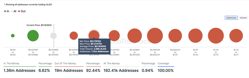 ตามข้อมูลที่ได้รับจาก IntoTheBlock นักลงทุนของ Algorand ได้เสนอราคาเพื่อซื้อโทเค็น 53.97 ล้านToken ในราคาเฉลี่ย 0.16 ดอลลาร์ สินทรัพย์เหล่านั้นมีมูลค่า 8.09 ล้านดอลลาร์