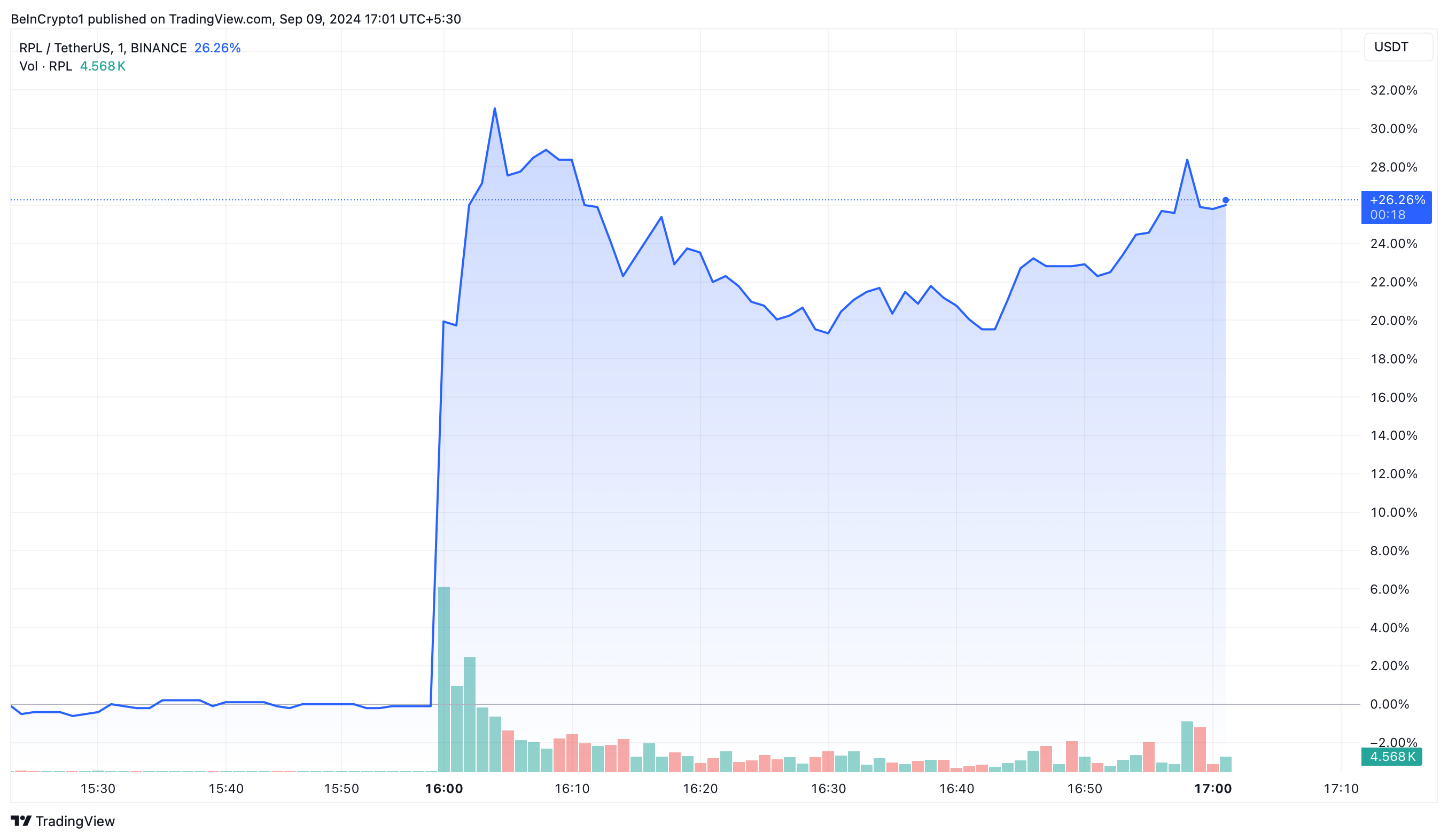 น่าแปลกที่การเพิ่มเข้ารายการนี้เกิดขึ้นในช่วงที่ Rocket Pool ไม่ได้อัปเดตโซเชียลมีเดียตั้งแต่วันที่ 19 ธันวาคม 2023 อย่างไรก็ตาม การประกาศดังกล่าวได้กระตุ้นให้ราคา RPL พุ่งขึ้น 30% อย่างรวดเร็ว แม้ว่าต่อมาจะมีความเสถียร แต่โทเค็นยังคงรักษากำไรไว้ประมาณ 26% นับตั้งแต่การประกาศ