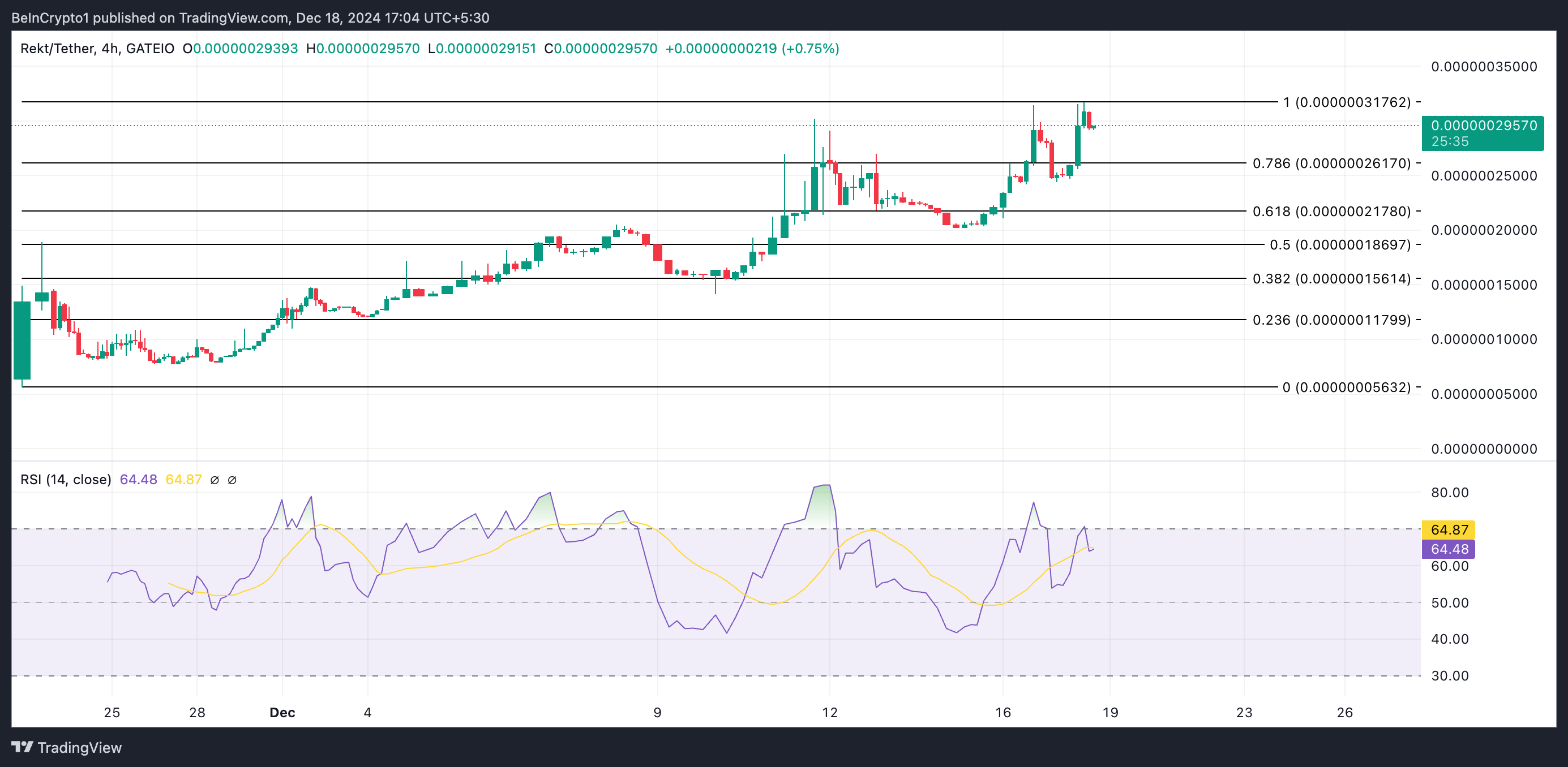 REKT ปัจจุบันซื้อขายที่ 0.00000029 ดอลลาร์ มันทำสถิติสูงสุดใหม่ที่ 0.00000031 ดอลลาร์ ในวันนี้และได้เห็นการถอยกลับ 7% อย่างไรก็ตาม แม้จะมีการปรับฐานนี้ การซื้อขายยังคงดำเนินต่อไป