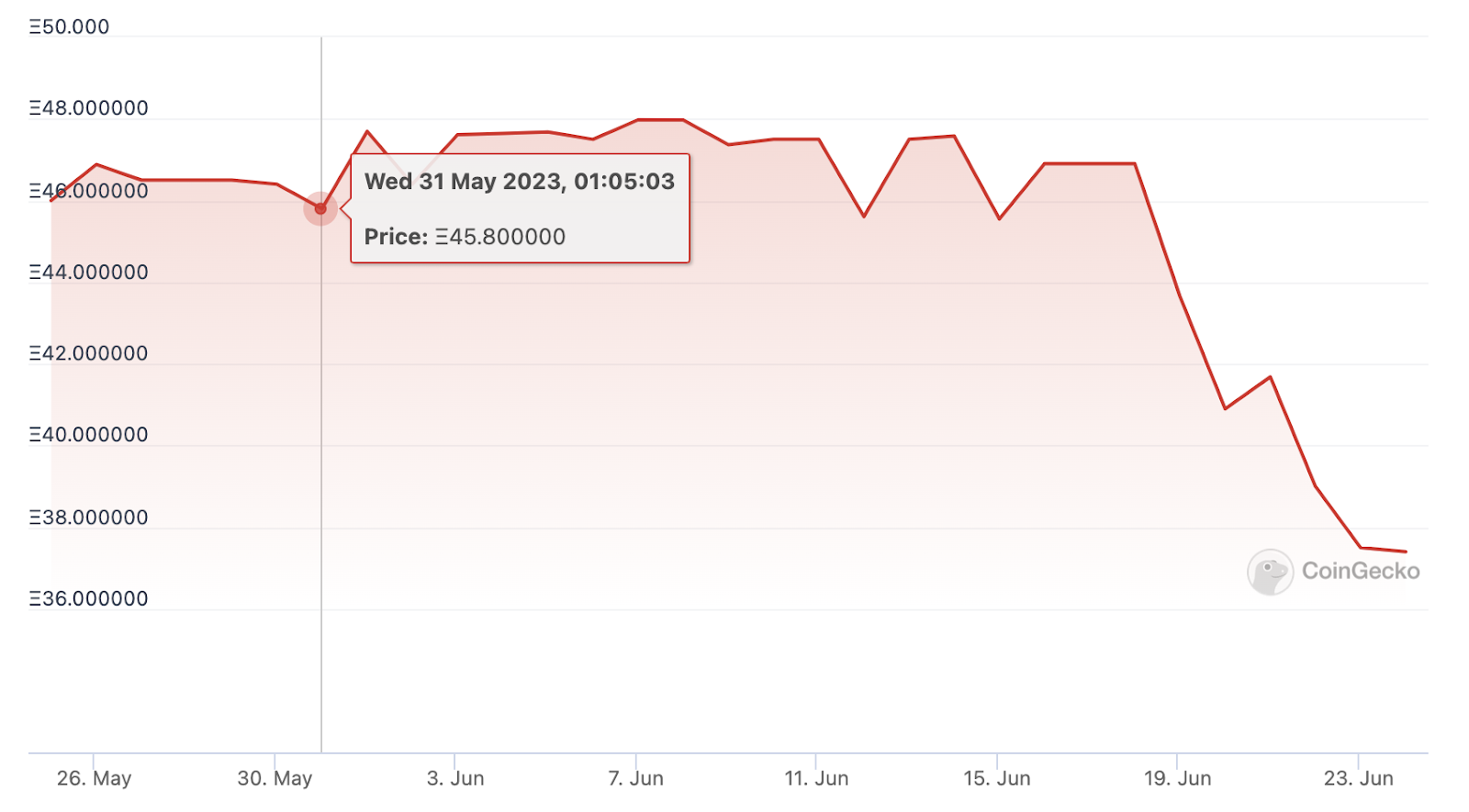 ข้อมูลจาก Coingecko แสดงให้เห็นว่าตลาด Altcoin ปรับตัวลง 11% ระหว่างวันที่ 31 พฤษภาคมถึง 18 มิถุนายน ในขณะเดียวกัน BAYC มีปริมาณการซื้อขายเพิ่มขึ้น และราคาพื้นเพิ่มขึ้นเล็กน้อยจาก 45.8 ETH เป็น 46.9 ETH