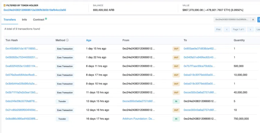 SponsoredArbitrum Foundation ได้ขายโทเค็น 50 ล้านโทเค็นจาก 750 ล้านโทเค็น ARB ซึ่งทาง Arbitrum Foundation จัดสรรเอง ก่อนที่จะขออนุญาตจากชุมชนผู้ใช้งาน
