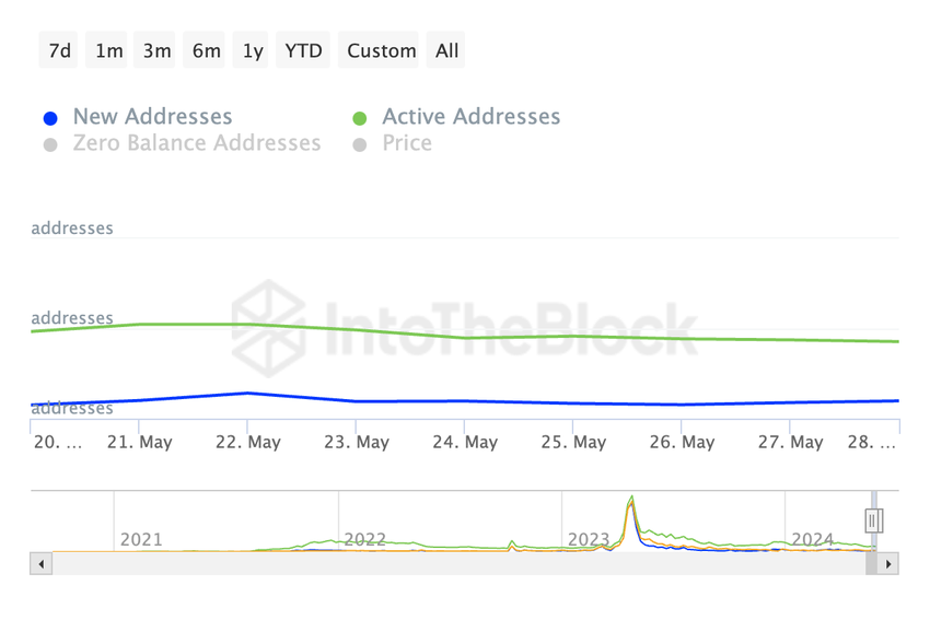 altcoin ยังได้เห็นความต้องการใหม่ลดลง จํานวนที่อยู่ใหม่ที่สร้างขึ้นทุกวันเพื่อซื้อขาย AVAX ลดลง 2%