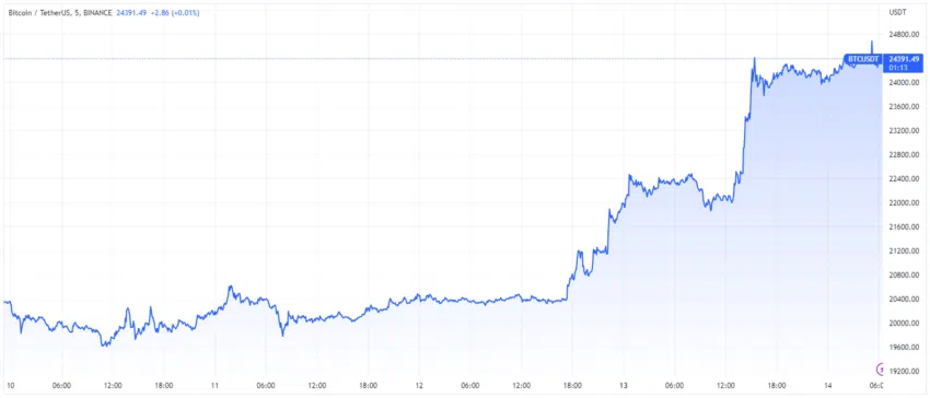 จะเห็นได้ว่าราคาของ BTC เพิ่มขึ้นเกือบ 10% ในช่วง 24 ชั่วโมงที่ผ่านมา และมีมูลค่าประมาณ 24,500 ดอลลาร์สหรัฐฯ ณ เวลาที่เขียนบทความต้นฉบับ
