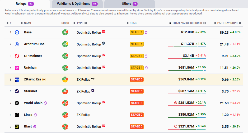 นอกจากการแซงหน้า Arbitrum One แล้ว Base ยังได้พัฒนาจาก Stage 0 ซึ่ง rollup ถูกควบคุมโดยผู้ดำเนินการอย่างเต็มที่ (full training wheels)