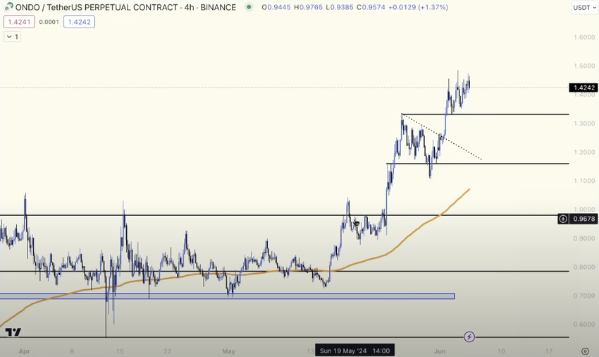 Ondo Finance ได้รับการเน้นย้ำว่าเป็นผู้เล่นหลักในภาค สินทรัพย์ในโลกแห่งความเป็นจริง ด้วยการเคลื่อนไหวของราคาที่เป็นขาขึ้นอย่างต่อเนื่องและความสนใจของตลาดที่สําคัญ ONDO จึงโดดเด่น