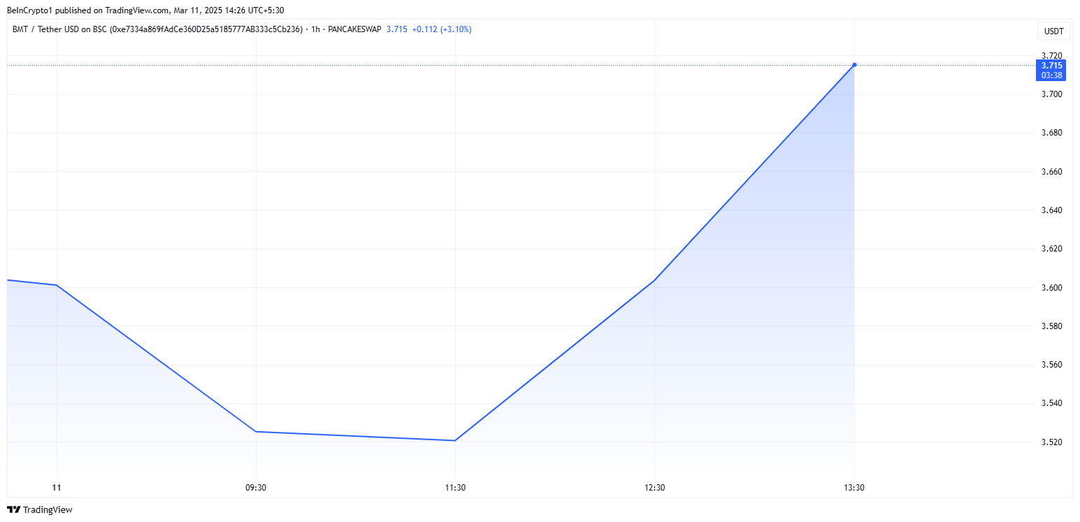 ผู้ที่ไม่มี BNB สามารถแลกเปลี่ยนภายในแท็บการซื้อขายของ Binance Wallet หรือฝากโดยตรงจากบัญชี Binance Spot ของพวกเขา หลังจากประกาศนี้ไม่นาน ราคาของ BMT บันทึกการเพิ่มขึ้นเล็กน้อย สะท้อนถึงความเชื่อมั่นของผู้ใช้