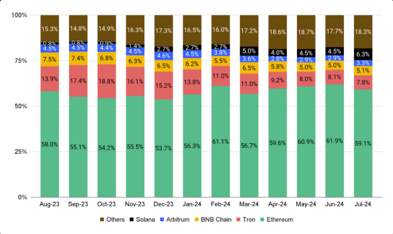 ในทางกลับกัน ตลาดโทเค็นที่ไม่สามารถเปลี่ยนได้ (NFT) ลดลงตลอดเดือนกรกฎาคม โดยประสบกับปริมาณการขายลดลง 7.1% ไฮไลท์สําคัญในภาคส่วนนี้คือปริมาณที่เพิ่มขึ้นในคอลเลกชันที่ใช้ SOL เช่น Solana Monkey Business และ Retardio Cousins เมื่อเทียบกับคอลเลกชัน Ethereum ที่สําคัญและคอลเลกชัน Ordinals อันดับต้น ๆ ที่รายงานการลดลง