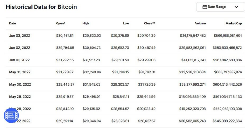 Sponsoredเมื่อวันที่ 12 พฤษภาคม BTC เปิดตลาดมาที่ราคา 28,936.73 ดอลลาร์สหรัฐฯ และภายในวันเดียวกัน ลดลงมาอยู่ที่ 26,350.49 ดอลลาร์สหรัฐฯ ปริมาณของการซื้อขายอยู่ที่ราว 66.99 พันล้านดอลลาร์สหรัฐฯ ซึ่งสอดคล้องกับมูลค่าตามราคาตลาดที่ราว 553 พันล้านดอลลาร์สหรัฐฯ ซึ่งนับว่าลดลงร้อยละ 24 จากมูลค่าในวันเปิดตลาดของ BTC เนื่องจากราคาที่ลดลงอย่างรวดเร็ว โดยเฉพาะ BTC ที่มีราคาต่ำสุดนับตั้งแต่ปี 2020