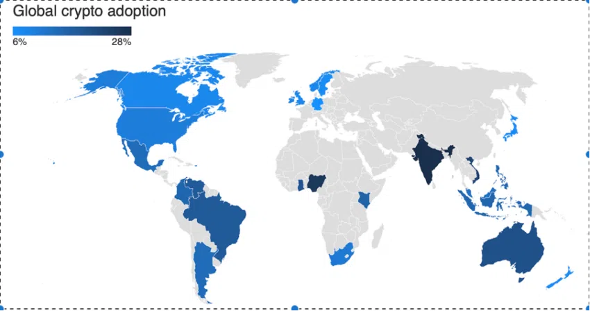 “(…) เฉลี่ย 36% เป็นผู้หญิงเทียบกับ 64% เป็นผู้ชาย นอร์เวย์มีช่องว่างที่กว้างที่สุด โดย 75% ของผู้ที่เป็นเจ้าของคริปโตเป็นผู้ชาย เวียดนามนั้นใกล้เคียงที่สุดระหว่างเพศ (ความเป็นเจ้าของคริปโตเป็นผู้ชาย 54% เทียบกับผู้หญิง 46%)”