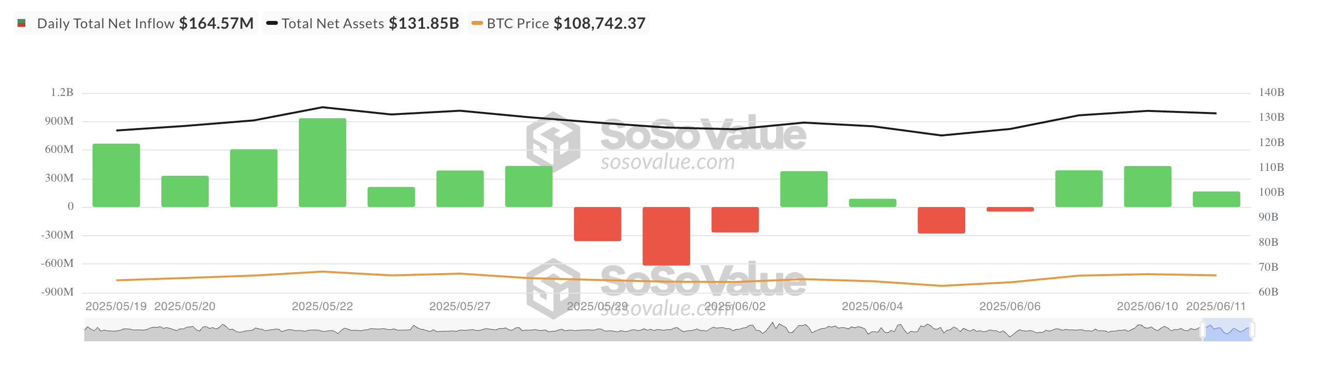 ในวันพุธ การไหลเข้าสุทธิใน US-listed spot BTC ETFs รวมเป็น 165 ล้าน USD แม้ว่าตัวเลขนี้จะแสดงถึงความสนใจของนักลงทุนที่ยังคงมีอยู่ในกองทุนการลงทุนเหล่านี้ แต่ก็เป็นการลดลง 61% จาก 435 ล้าน USD ที่บันทึกไว้เมื่อวันที่ 10 มิถุนายน