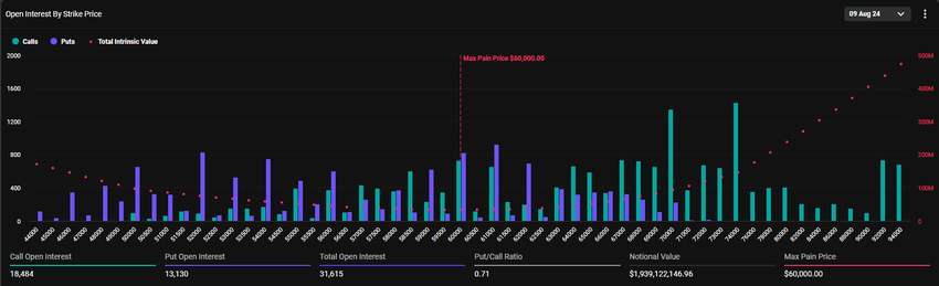 จากข้อมูลของ Deribit ตัวเลือก Bitcoin มูลค่า 1.94 พันล้านดอลลาร์กําลังจะหมดอายุ จุดเจ็บปวดสูงสุดของสัญญาเหล่านี้อยู่ที่ 60,000 ดอลลาร์