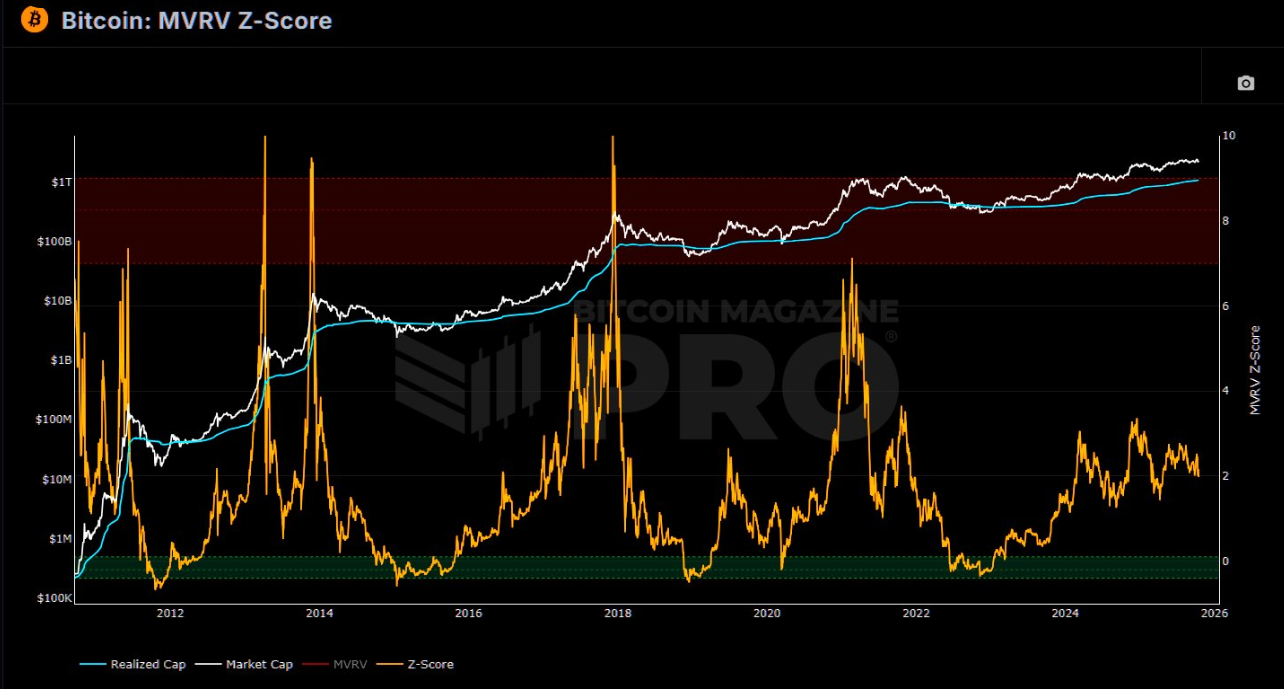 ในขณะเดียวกัน Stockmoney Lizards ชี้ว่า MVRV Z-Score ของ Bitcoin ซึ่งเป็นตัวชี้วัดที่เปรียบเทียบมูลค่าตลาดกับมูลค่าที่รับรู้ อยู่ใกล้ 2.15 ซึ่งเป็นโซนที่เกี่ยวข้องกับการสะสมมากกว่าความยินดี