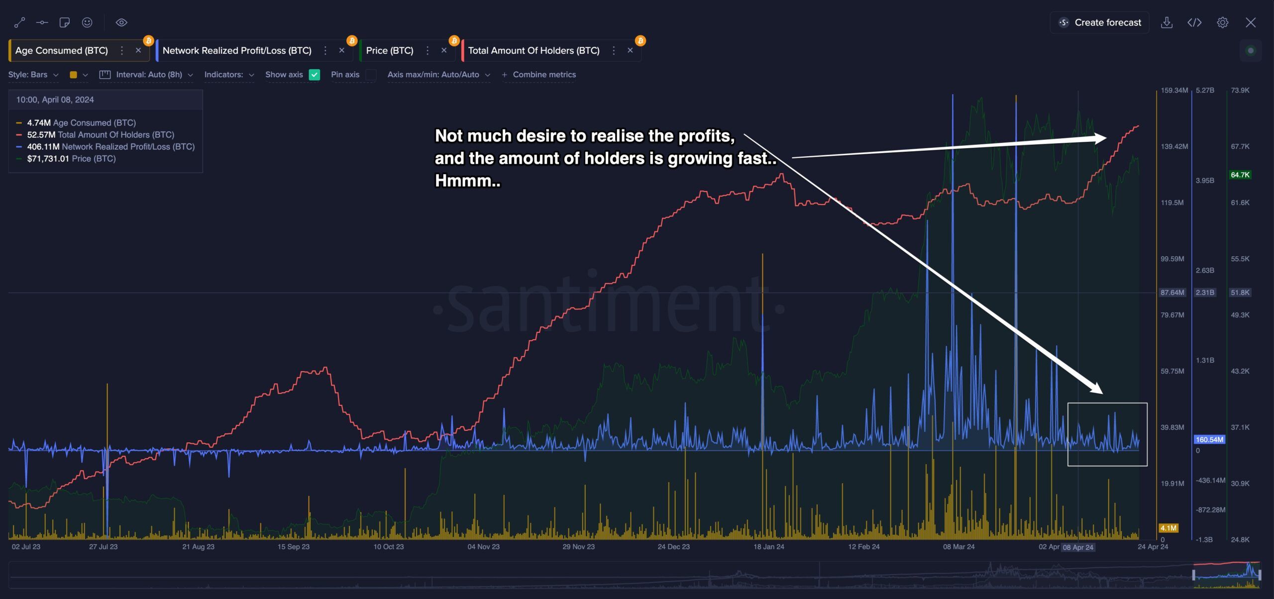 เมื่อตลาดปรับตัวเข้ากับการลดลงครึ่งหนึ่ง เมตริก “กําไร/ขาดทุนที่รับรู้ของเครือข่าย” (NRPL) จึงมีความสําคัญ เครื่องมือนี้ระบุความสามารถในการทํากําไรของธุรกรรมล่าสุดและให้ความกระจ่างเกี่ยวกับความเชื่อมั่นของตลาดในวงกว้าง NRPL ที่สูงบ่งชี้ว่าผู้ถือกําลังใช้ประโยชน์จากผลกําไร ซึ่งอาจนําไปสู่การขายที่เพิ่มขึ้น