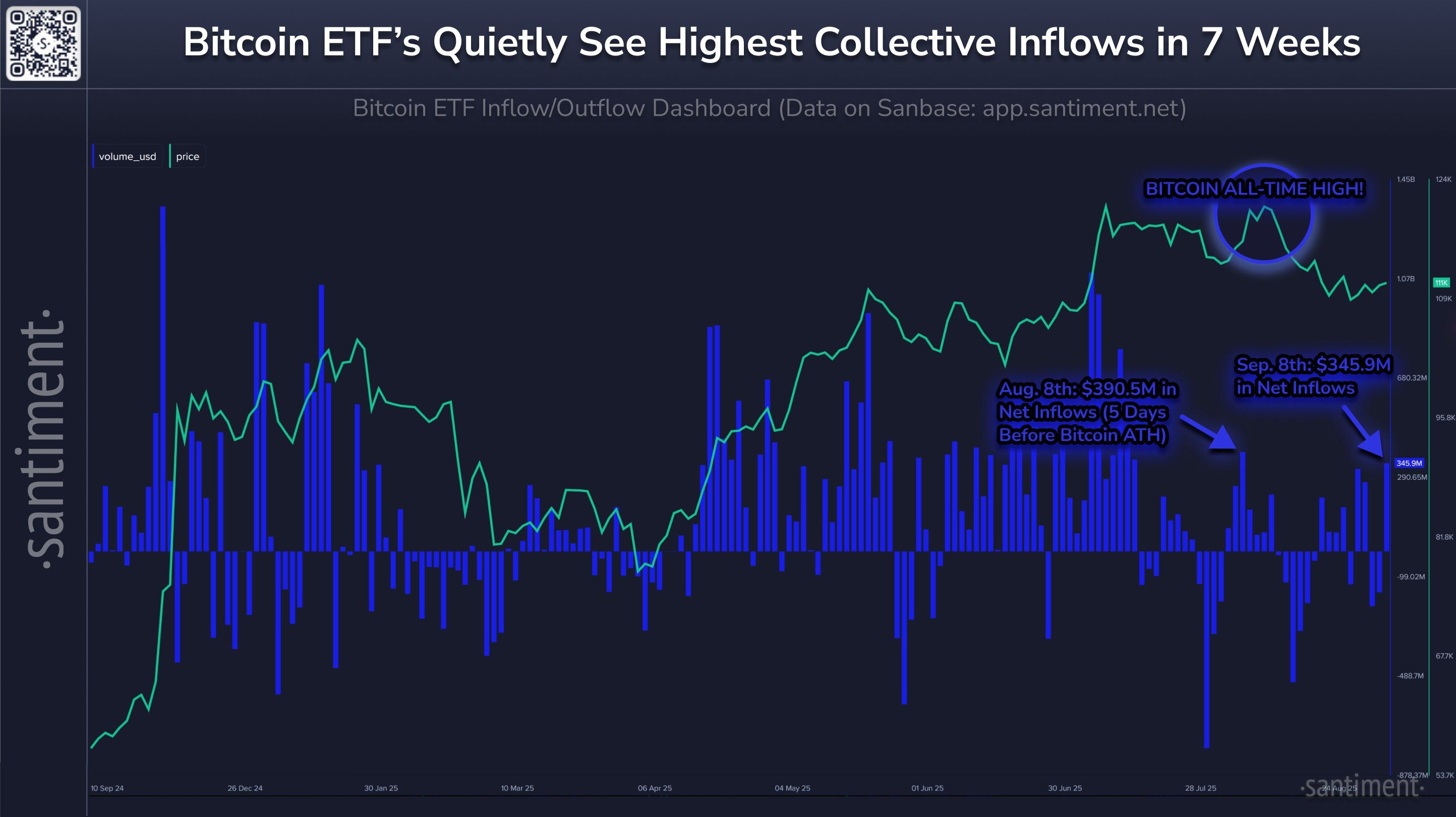 การไหลเข้าของ ETF กำลังเสริมสร้างเรื่องราวที่เป็นบวก ข้อมูลแสดงให้เห็นว่าเงินกำลังกลับมาอย่างรวดเร็วสู่ Bitcoin ETFs แม้ว่านักลงทุนรายย่อยหลายคนจะลดการเปิดเผยลง การมีส่วนร่วมของสถาบันมักบ่งบอกถึงความเชื่อมั่นในระยะยาว ให้ความมั่นคงและขับเคลื่อนความต้องการเกินกว่าการเก็งกำไรระยะสั้น