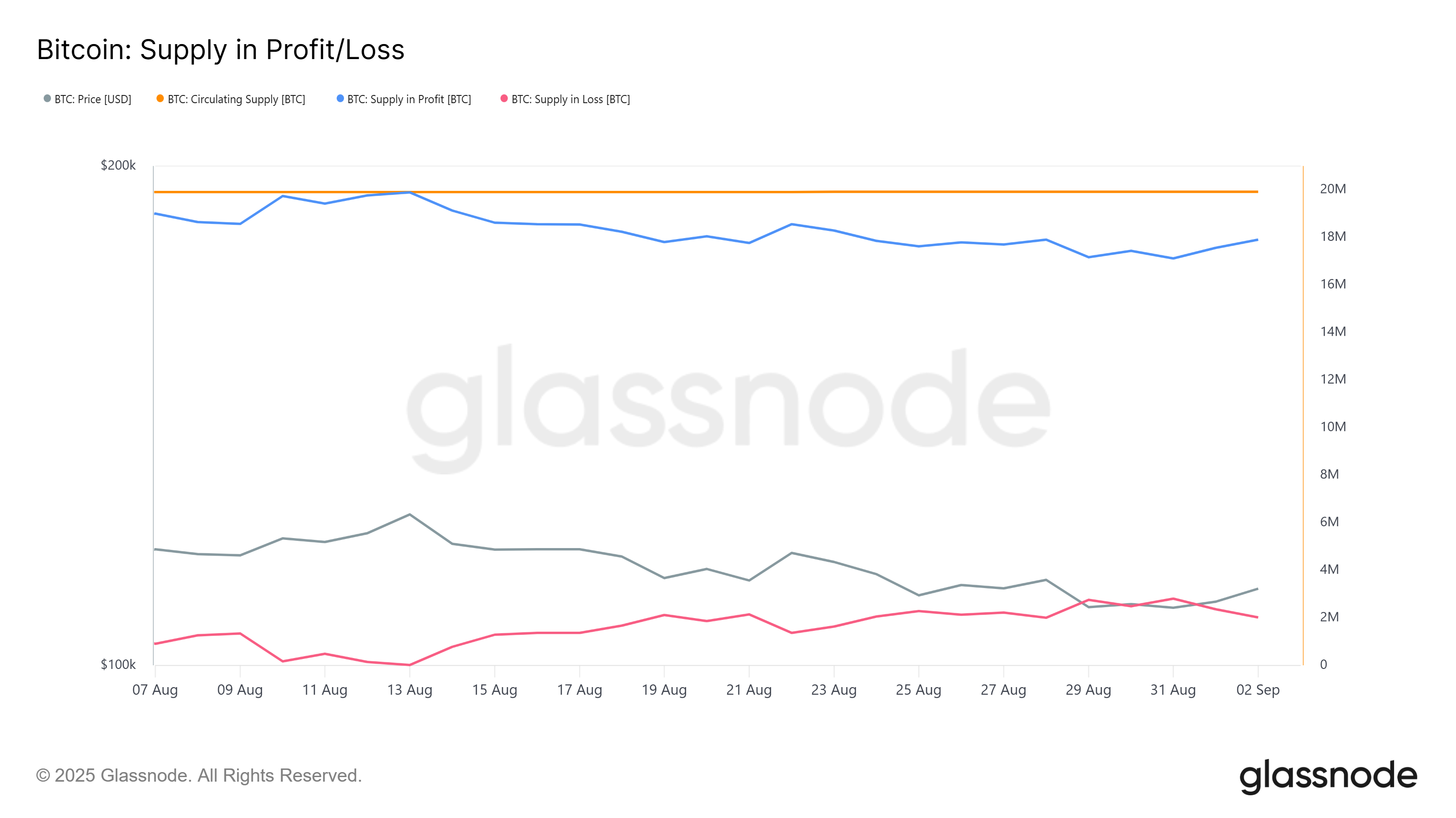ข้อมูลบนเครือข่ายสนับสนุนมุมมองนี้ จาก 19.91 ล้าน BTC ที่หมุนเวียน มีเพียงประมาณ 2.73 ล้าน coin ที่สูญหาย ซึ่งคิดเป็นเพียง 13.71% ของอุปทาน ต่ำกว่าระดับที่เกี่ยวข้องกับตลาดหมีที่การสูญเสียมักจะเกิน 50% ของ Bitcoin ที่หมุนเวียน