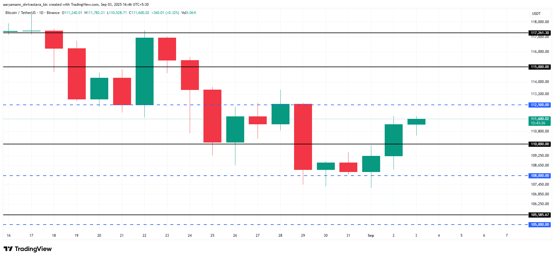 Bitcoin ซื้อขายที่ 111,600 USD ในขณะที่เขียนนี้ ซึ่งต่ำกว่าระดับต้านทานที่ 112,500 USD เล็กน้อย สินทรัพย์นี้ดีดตัวกลับจาก 108,000 USD เมื่อต้นสัปดาห์นี้ แสดงถึงความแข็งแกร่งที่กลับมา การยืนเหนือ 110,000 USD ให้ความมั่นคง ให้ BTC ฐาน ที่จำเป็นในการพยายามฟื้นตัวเพิ่มเติมจากแรงกดดันของตลาดที่มีอยู่